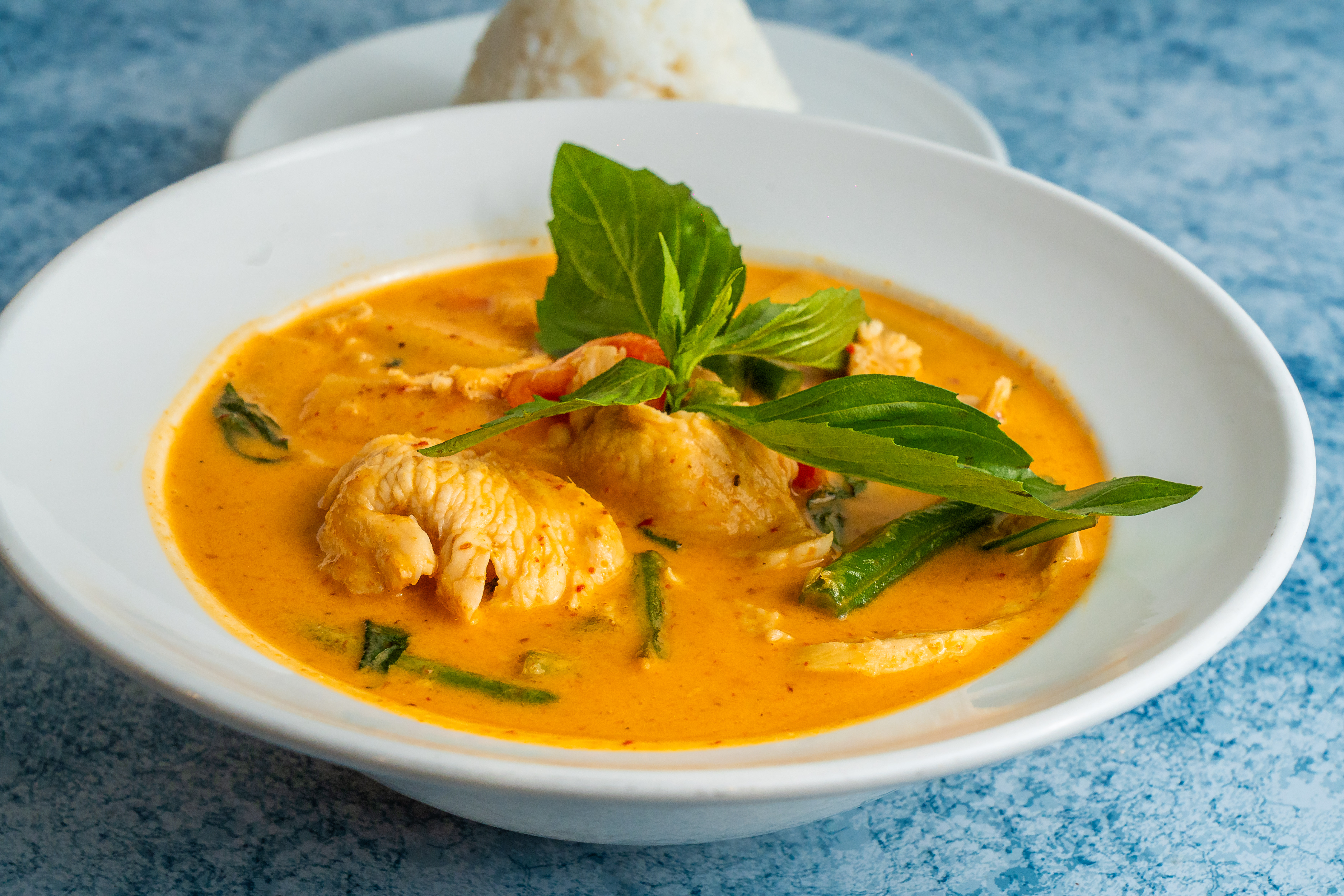 Medium spicy curry with string bean, carrot, bell pepper in coconut milk with panang curry paste
